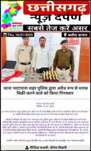 *थाना भाटापारा शहर पुलिस द्वारा अवैध रूप से शराब बिक्री करने वाले एक आरोपी को किया गया गिरफ्तार*