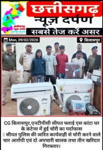 मामले का संक्षिप्त विवरण इस प्रकार है कि प्रार्थी अनंत कुमार वाष्णेय पिता स्व श्री शशीपाल वाष्णेय उम्र 47 साल निवासी एनटीपीसी सीपत थाना सीपत जिला बिलासपुर छ0ग0 जो छज्च्ब् ैप्च्।ज् में ऐश मैंनेजमेन्ट विभाग में अपर महाप्रबंधक (।ळड), के पद पर कार्यरत है इसके क्षेत्राधिकार के अंतर्गत ग्राम कौड़िया के समीप स्थित राखड़ डेम में दो कांटा (कंटेनर) घर है दोनों कंटेनर का ताला टूटा हुआ पाया गया दोनो कांटा घरो से ऐयर कंडीशनर 02 नग, बैट्री सहित इंटवर्टर 02 नग, डिसप्ले यूनिट 03 नग (दो छोटी, एक बड़ी), कम्प्यूटर सेट 02 नग (01 सीपीयू, 01 की बार्ड, 01 मार्निटर, 01 माउस, 01 केबल सेट), प्रिंटर 01 नग, चेयर 02 नग, टेबल 01 नग कुल कीमती करीबन 4,33,000/रूपये नहीं था जिसे कोई अज्ञात व्यक्ति रात्रि में दोनो कंटेनर का दरवाजा में लगे ताला तोड़ कर चोरी कर ले गये है कि रिपोर्ट पर अपराध पंजीबद्ध कर उक्त घटना की सूचना वरिष्ठ अधिकारियो को दिया गया जिस पर अज्ञात आरोपी को तत्काल धर पकड करने की दिशा निर्देश पर थाना प्रभारी सीपत द्वारा टीम तैयार कर चोरी के प्रकरण में तत्काल कार्यवाही करते हुये मुखबिर की सूचना पर कि जांजी के कुछ लडको के पास चोरी के कम्प्युटर, एसी व अन्य सामान है जिसे वे बिक्री करने के फिरक में है उक्त सूचना पर संदेही विष्णू सोनकर को हिरासत में लेकर हिकमतअमली से पूछताछ किया गया जो दिनांक घटना को अपने साथी 1. अमन खरे 2. गुलशन कुमार बंजारे 3. यश कुमार डोंगर एवं दो अपचारी बालको के साथ मिलकर रात्रि में चोरी करना स्वीकार करने किये तथा चोरी का कुछ सामना अपने पास होना तथा कुछ सामानो को बिक्री करना बताये जो आरोपियों 1. अमन खरे 2. गुलशन कुमार बंजारे 3. यश कुमार डोंगर 4. विष्णू सोनकर एवं दो अपचारी बालको तथा खरिदार 1. कृष्ण कुमार 2. गौतम खांडे 3. ईश्वर पटेल से चोरी हुई सत् प्रतिशत सामग्री ऐयर कंडीशनर 02 नग, बैट्री सहित इंटवर्टर 02 नग, डिसप्ले यूनिट 03 नग (दो छोटी, एक बड़ी), कम्प्यूटर सेट 02 नग (01 सीपीयू, 01 की बार्ड, 01 मार्निटर, 01 माउस, 01 केबल सेट), प्रिंटर 01 नग, चेयर 02 नग, टेबल 01 नग कीमती करीबन 4,33,000 रूपये, बरामद किया गया आरोपियो को गिरफ्तार कर न्यायिक रिमांड पर एवं अपचारी बालको को किशोर न्याय बोर्ड बिलासपुर भेजा गया।